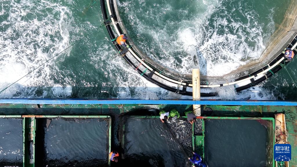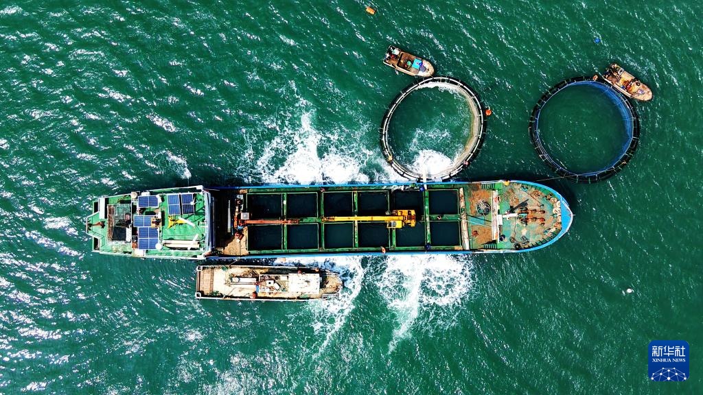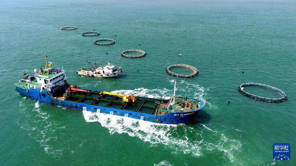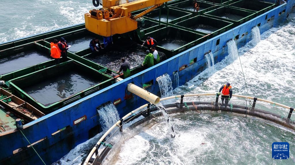 4月10日,山東青島西海岸新區(qū)魯海豐海洋牧場2026年首批10萬尾魚苗投入深水網(wǎng)箱進(jìn)行養(yǎng)殖。據(jù)悉,青島魯海豐海洋牧場地處國家一類水質(zhì)海域,水溫適宜、鹽度均衡,比較適宜海魚生長。新華社發(fā)(俞方平攝)
