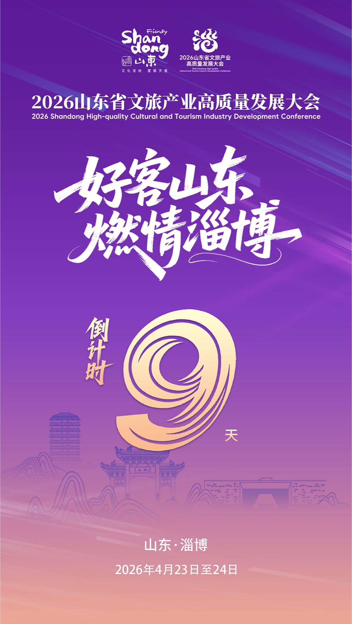 2026山東省文旅產(chǎn)業(yè)高質(zhì)量發(fā)展大會(huì)定于4月23日至24日在淄博舉行。本屆大會(huì)以“好客山東 燃情淄博”為主題,旨在全面展示山東及淄博文旅產(chǎn)業(yè)發(fā)展成就,激發(fā)文化創(chuàng)新活力,厚植發(fā)展新優(yōu)勢(shì)。(來(lái)源:山東省文化和旅游廳)
