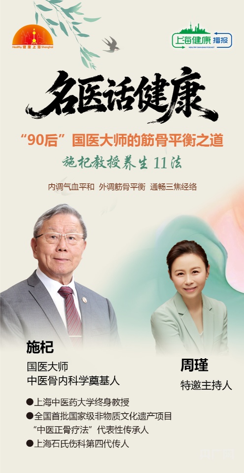 在“輕量級”提示之外,《上海健康播報》還打造了“重量級”欄目!睹t(yī)話健康》首期特邀“90后”國醫(yī)大師施杞教授,以七十載骨傷臨床實踐分享筋骨養(yǎng)護的東方智慧,年屆九旬仍健步如飛的身影讓觀眾感嘆“健康原來可以這樣生動”。
