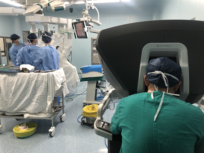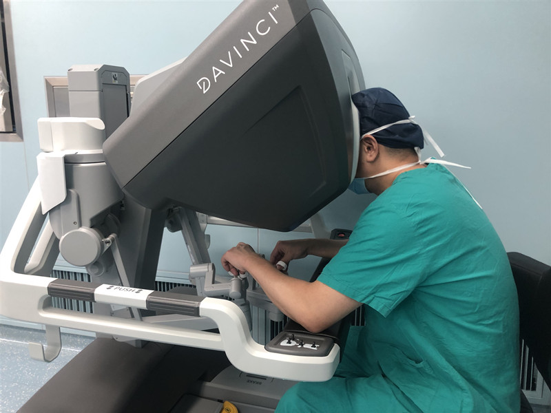 而它的一舉一動,都在主刀醫(yī)生鄒奇飛的操控之下。離手術臺一米遠的地方,鄒奇飛正通過操作平臺操控著這臺第四代達芬奇手術機器人。手術耗時約2個小時,這也是嘉定首例由第四代達芬奇手術機器人輔助實施的真正意義上的智能化手術。