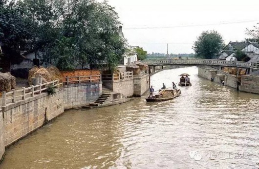 20世紀50年代,蜿蜒而過的婁塘河上,船上漁民正在撒網(wǎng)捕魚,水橋上蹲著的兩人一邊洗菜一邊聊著家常。