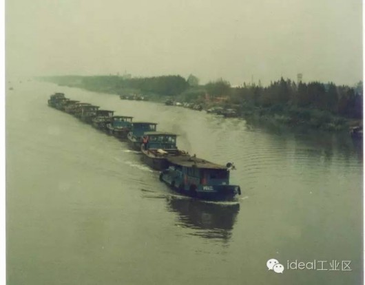 圖片說明:1980年,婁塘橫瀝河上拖船