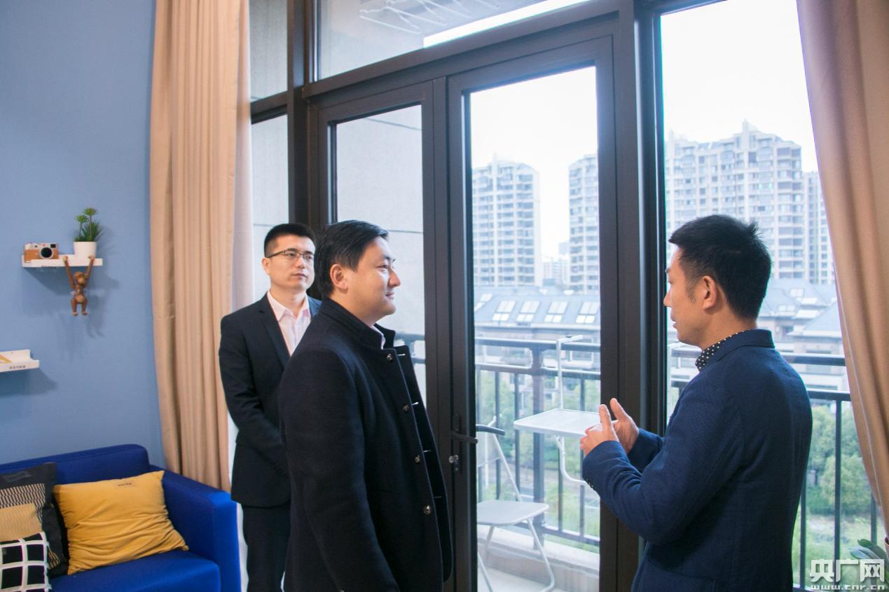 調(diào)研團通過參觀南翔店樣板房,深入了解了“上海青年守信安居計劃”的實施情況。近七十平方米的寬大居住空間、窗外望去碧水鮮花風光旖旎、獨有的藝術(shù)室內(nèi)落地窗墻面設(shè)計、品牌家裝確!傲喟胱 薄旅篮糜謱嵒菀司拥钠焚|(zhì)生活方式,讓大家贊不絕口。