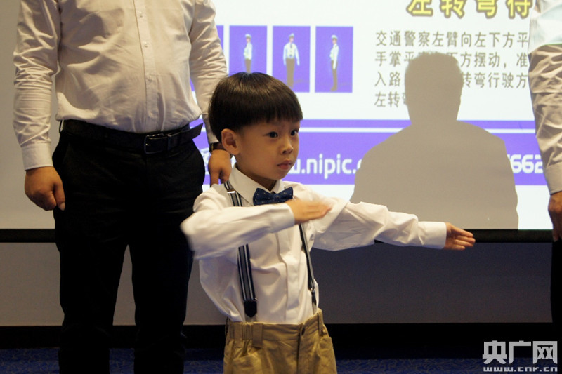 ▲家長(zhǎng)和孩子一起學(xué)習(xí)交通指揮手勢(shì)(央廣網(wǎng)發(fā) 滴滴提供)