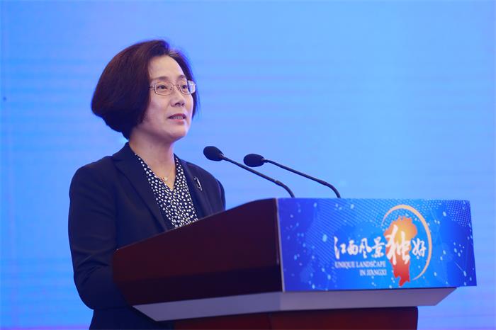 江西省人民政府副省長吳忠瓊在致辭中介紹了江西與上海同屬華東地區(qū),共處于長江中下游。長期以來,文化相通、經(jīng)濟相連,有著各領域的密切聯(lián)系及交流。她指出,近年來江西依托自身資源優(yōu)勢,大力傳承紅色基因,厚植古色文化,加快綠色崛起,匯聚了巨大的金色發(fā)展動能。江西省今年推出了一系列促進文化旅游產(chǎn)業(yè)發(fā)展的政策措施,為促進全省文化和旅游產(chǎn)業(yè)發(fā)展創(chuàng)造了優(yōu)越的政策環(huán)境和政務環(huán)境。她強調希望借此招商推介會,進一步接受上海的輻射和帶動,擴大開放,深化文化和旅游領域的合作,借上海及長三角地區(qū)文化和旅游產(chǎn)品富集、業(yè)態(tài)多元的優(yōu)勢,助推江西文化和旅游產(chǎn)業(yè)高質量跨越式發(fā)展。