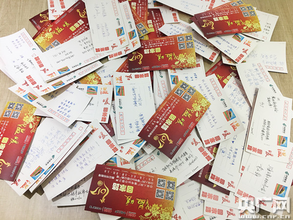 明信片上滿滿對(duì)親友的祝福 (央廣網(wǎng)記者唐奇云 攝)