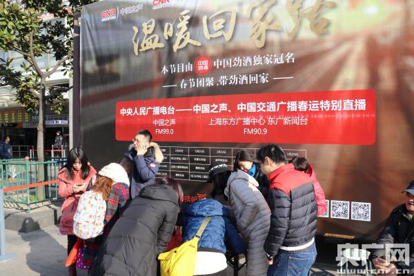 明天(24日)下午14:30-15:00,“2017年春運特別節(jié)目”《溫暖回家路》 上海火車站第二場直播明天繼續(xù),同樣在南廣場,依然會有現(xiàn)場活動,歡迎大家參加,也可以鎖定中國之聲,收聽直播。