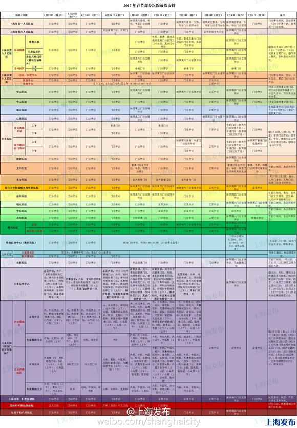 上海;2017春節(jié);醫(yī)院門診;放假安排