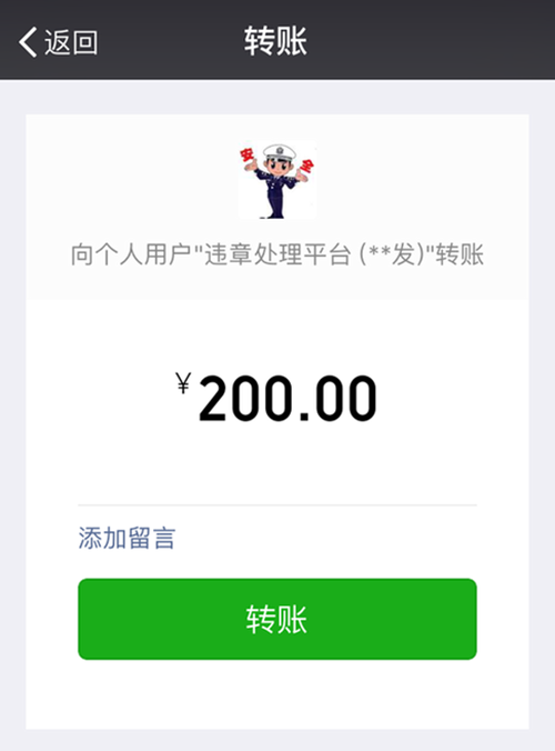 記者注意到,這張標(biāo)注為“2月22號”的“違停單”上煞有其事地寫下車輛號牌,并寫有違法時(shí)間、地點(diǎn)等信息,但在對違停行為的描述中標(biāo)注的卻是所謂“亂!,更讓人哭笑不得的是,這張所謂的“違停單”還寫道,如逾期不處理將被“處于”3%滯納金,令人無語。掃描這張“假罰單”上面的二維碼,直接跳轉(zhuǎn)到一個(gè)轉(zhuǎn)賬頁面,收款人是一個(gè)頭像為“違章處理平臺”字樣的微信個(gè)人賬戶。記者了解到,上海公安交警部門一直使用《上海市公安局違法停車告知單》,至今從未使用過類似的二維碼繳款告知單。