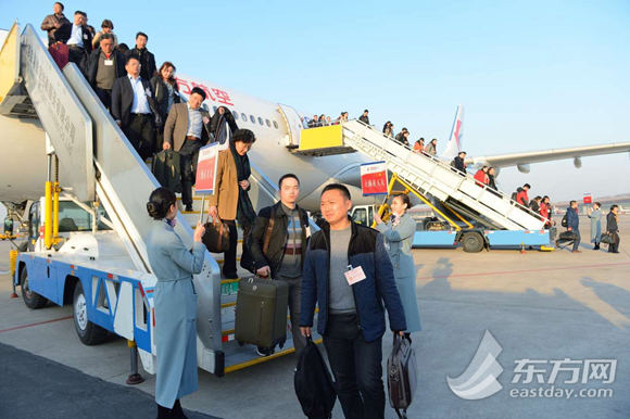東方網(wǎng)記者項(xiàng)穎知、毛麗君、劉昊、曹子琛3月2日報(bào)道:今天下午,參加第十二屆全國人民代表大會第五次會議的上海團(tuán)代表們順利乘機(jī)抵達(dá)北京。