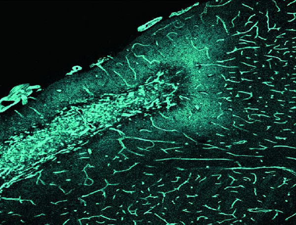 圖說:ADAMTS13調(diào)控腦卒中后血管新生和重塑的關(guān)鍵步驟。染色小鼠腦切片顯示腦卒中引起大腦皮層缺血巢周邊區(qū)域血管新生,然而新生的血管尚不成熟和穩(wěn)定。給予小鼠重組ADAMTS13不但增加新生血管的數(shù)量并且可促進(jìn)血管的功能重塑,最終導(dǎo)致小鼠神經(jīng)功能的修復(fù)。