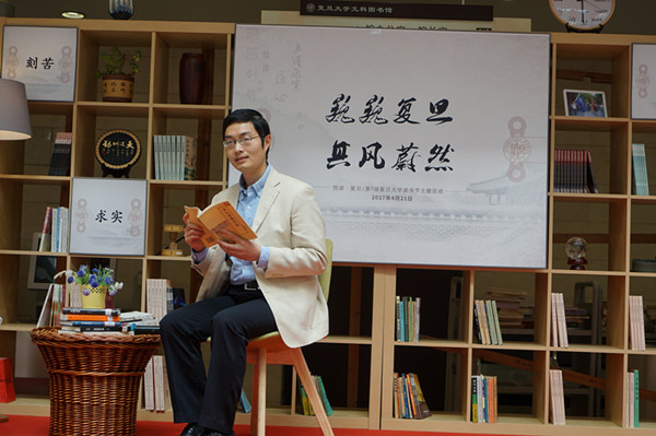 本次讀書節(jié)主題活動藉由朗讀的方式,演繹復(fù)旦學(xué)風(fēng)之蔚然,詮釋閱讀思考之真諦。復(fù)旦大學(xué)圖書館館長陳思和,任重書院院長王德峰,法語系教授褚孝泉,國際政治系青年教師陳玉聃以及學(xué)生嘉賓李金城、鐘明月等多位重量級嘉賓來到活動現(xiàn)場,講述他們的故事,分享他們鐘愛的作品。