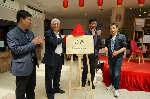 在讀書節(jié)主題活動上,復(fù)旦大學(xué)詩歌資料收藏中心正式成立,原有的復(fù)旦詩歌圖書館將并入其中。詩人、作家、詩歌資料收藏中心執(zhí)行主任肖水介紹了中心的緣起及未來發(fā)展方向。劉承功、陳思和、嚴(yán)峰、肖水共同為復(fù)旦大學(xué)詩歌資料收藏中心揭牌。