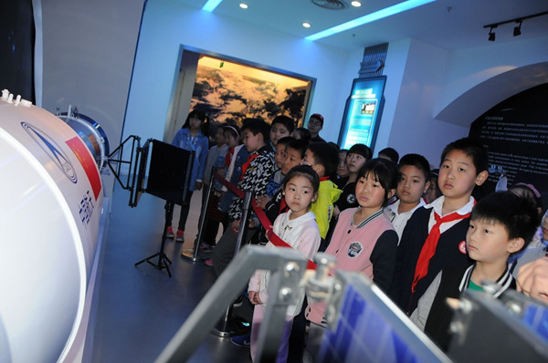 學生參觀空間實驗室和神舟飛船模型