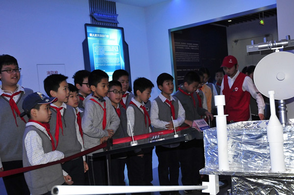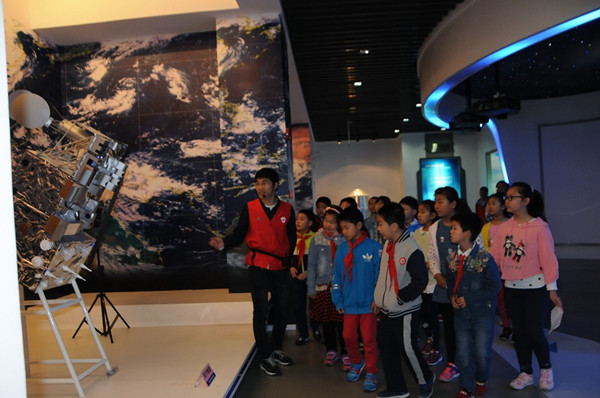 學生參觀氣象衛(wèi)星