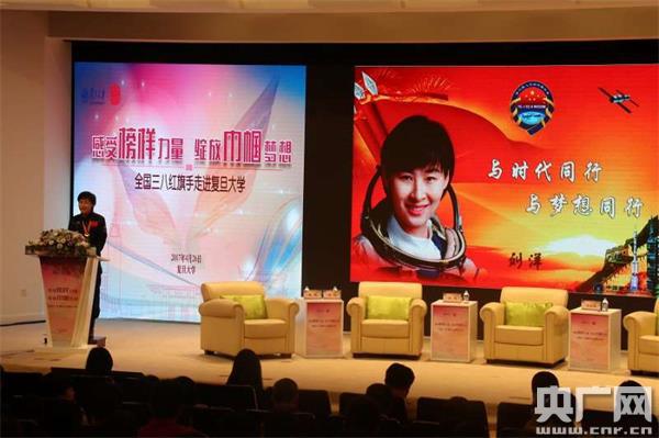 央廣網(wǎng)上海4月26日消息(記者傅聞捷)今天,四位全國三八紅旗手走進復旦校園,與師生共話理想與人生。中國首位女航天員劉洋,北斗衛(wèi)星產(chǎn)業(yè)化推廣領頭人、中國交通通信信息中心導航中心副主任王淑芳,上海唯眾傳媒股份有限公司創(chuàng)始人、董事長楊暉,上海市長寧區(qū)工商聯(lián)副主席、分眾傳媒首席戰(zhàn)略官陳巖分別講述了自己追逐夢想的故事。