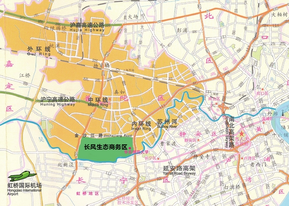 圖片說明:長風生態(tài)商務(wù)區(qū)所在區(qū)域示意圖。