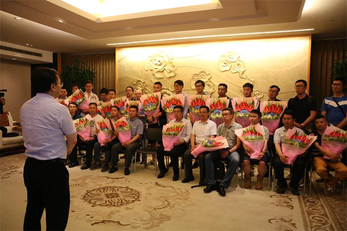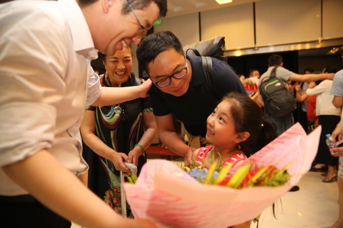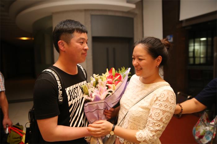 央廣網(wǎng)上海7月18日消息(記者吳善陽(yáng) 通訊員焦葦) “歡迎回家!”,伴隨著一聲親切的問候和一束美麗鮮花,上海市教育委員會(huì)倪閩景副主任緊緊握住了援藏工作隊(duì)隊(duì)長(zhǎng)傅欣的手。今晚,在圓滿完成了一年期各項(xiàng)任務(wù)后,上海市首批“組團(tuán)式”教育人才援藏工作隊(duì)隊(duì)員載譽(yù)凱旋。上海市教委在虹橋機(jī)場(chǎng)舉行歡迎儀式熱烈歡迎援藏教師的歸來。隨后,各區(qū)教育局領(lǐng)導(dǎo)及教師選派單位和家屬在上海師范大學(xué)會(huì)議中心迎候教師歸來。