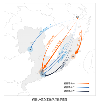 “線下假貨源頭不根除,全社會的假貨治理就永遠(yuǎn)無法真正收工!比~智飛以“假冒LV系列案”舉例稱,2016年11月,阿里打假特戰(zhàn)隊(duì)協(xié)助警方搗毀假冒LV生產(chǎn)工廠,幕后老板陳某逃脫。 2017年,阿里配合警方打掉陳某在佛山800余平米的制假窩點(diǎn),并順藤摸瓜端掉湖南永州、廣東廣州的另一假冒LV團(tuán)伙,徹底搗毀生產(chǎn)工廠、倉儲物流點(diǎn)和批發(fā)檔口,抓獲犯罪嫌疑人10余人,涉案總金額達(dá)2.16億元。至此,假LV案背后的制售假鏈條徹底被斬?cái)唷?/div>
