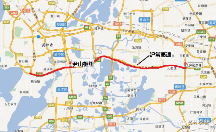 從上海青浦方向往蘇州掃墓車輛經(jīng)滬常(S58,即原蘇滬)高速公路—尹山樞紐—蘇州繞城(S58\S9)高速公路西南段。
