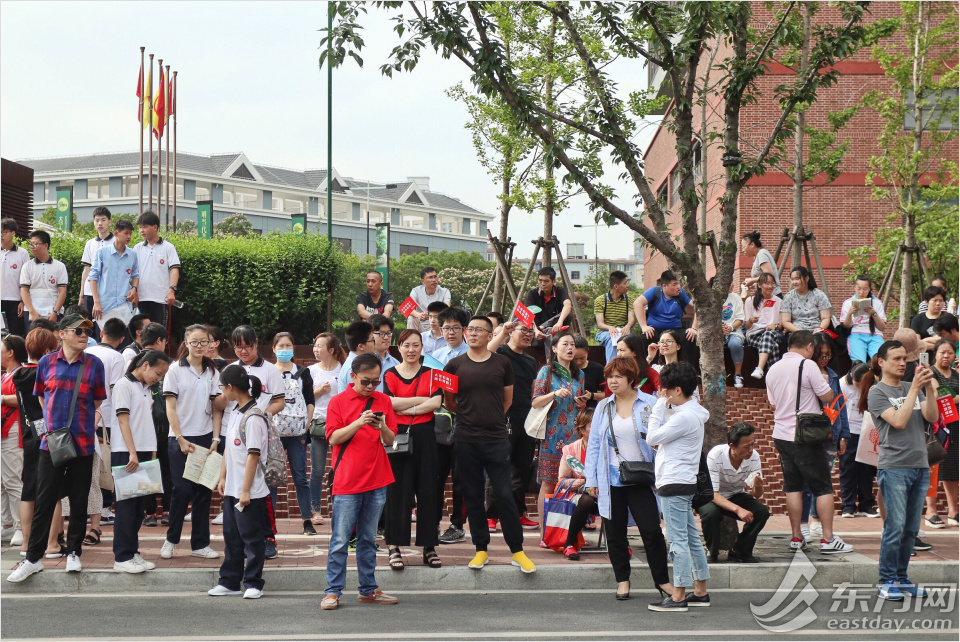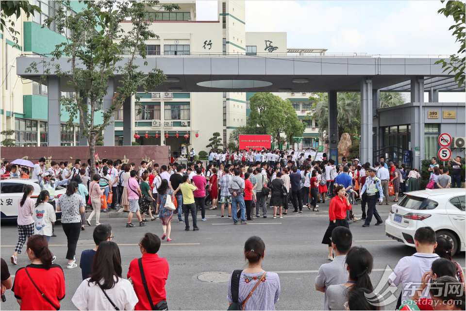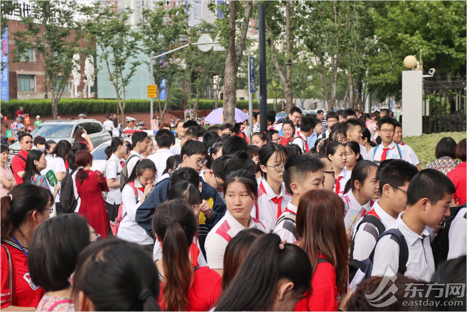 今天上午,2018年上海中考開考。滬上初三考生奔赴全市138個(gè)考點(diǎn)的3131個(gè)考場(chǎng)參加考試。今天上午的考試科目為語文,下午為物理、化學(xué)。明天還將舉行外語和數(shù)學(xué)科目的考試。中考成績將于7月6日公布。圖為早上八點(diǎn)半,靜安區(qū)風(fēng)華初級(jí)中學(xué)考點(diǎn)已是人頭攢動(dòng),考生和家長早早便來到校門口候考。
