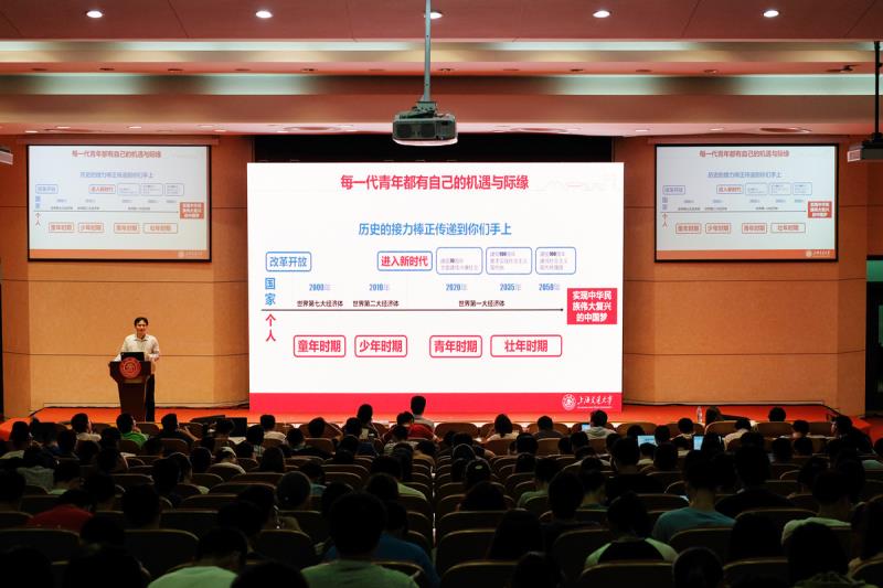 “2057年,如果你回母校,你會(huì)如何回憶自己的大學(xué)與人生?” 7月2日,上海交大《新時(shí)代社會(huì)認(rèn)知實(shí)踐》導(dǎo)論課開課。從7月2日至7月6日,上海交大黨委常委、副校長王偉明圍繞“如何認(rèn)識(shí)新時(shí)代變化”“如何進(jìn)行認(rèn)知和實(shí)踐”“如何做好實(shí)踐的準(zhǔn)備”進(jìn)行了六次授課,覆蓋3350位學(xué)生!爸袊圃2025、人工智能、長三角一體化……邁入新時(shí)代,這些我們看似熟悉,但其實(shí)并不了解的變化需要同學(xué)們通過社會(huì)實(shí)踐去探索!蓖鮽ッ魍ㄟ^一個(gè)又一個(gè)與同學(xué)們息息相關(guān)、意義深刻的案例,激發(fā)同學(xué)們主動(dòng)認(rèn)知時(shí)代的興趣,呼吁同學(xué)們轉(zhuǎn)換視角,走出寢室,走出校門,走出上海,走出長三角,走出思維定式,通過社會(huì)實(shí)踐,感知新時(shí)代的精彩。