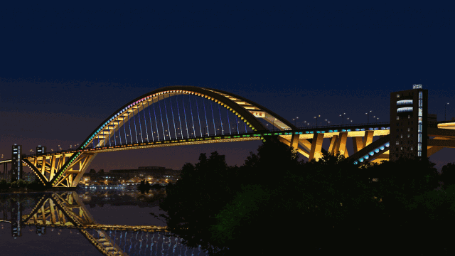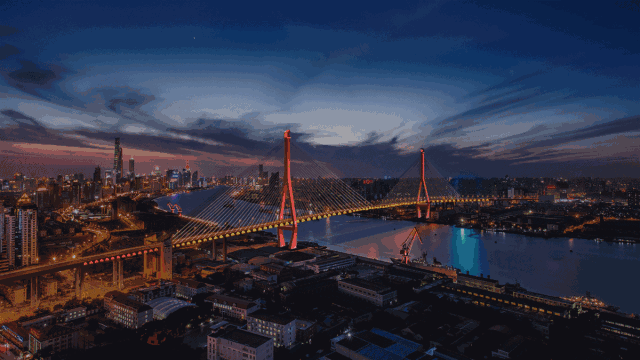盧浦大橋夜景是“空中彩虹”,如長虹臥波、飛架兩岸。盧浦大橋整體以黃光為主,遇到重大活動,可以使用彩虹色進行動態(tài)滾動!安屎缧Ч麑⒈戎案普!苯鸩鼙硎荆诒R浦大橋的景觀提升過程中,將通過技術(shù)手段讓燈與燈的銜接將更順暢,使得色彩過渡更自然。