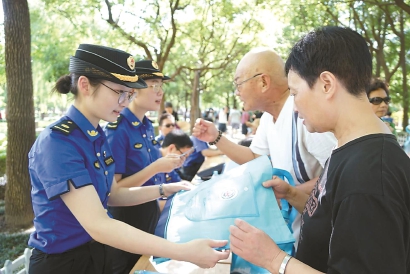 上海市城管執(zhí)法局執(zhí)法總隊(duì)“90后”城管向市民發(fā)放普法宣傳資料。(均 資料)