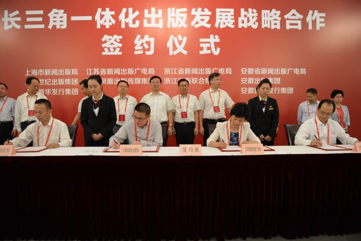 央廣網(wǎng)上海8月15日消息(記者傅聞捷)今天上午,值2018上海書展暨“書香中國”上海周開幕之際,由上海市新聞出版局倡議的長三角一體化出版發(fā)展戰(zhàn)略合作協(xié)議簽約儀式在上海展覽中心舉行。來自長三角三省一市(江蘇、浙江、安徽、上海)的新聞出版(版權(quán))局負(fù)責(zé)人共同簽署了《關(guān)于共同推動長三角區(qū)域出版和版權(quán)發(fā)展的框架協(xié)議》。《框架協(xié)議》明確:長三角區(qū)域三省一市今后將在行業(yè)監(jiān)管、產(chǎn)業(yè)發(fā)展、公共文化服務(wù)以及合作交流等方面深化合作,共促發(fā)展;建立長三角新聞出版(版權(quán))局長聯(lián)席會議機(jī)制,每年召開一次“長三角新聞出版高峰論壇”,由三省一市輪流舉辦等合作機(jī)制。