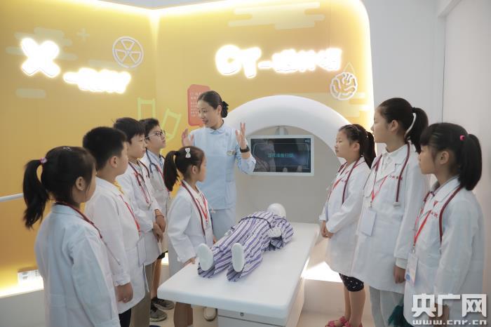 記者在現(xiàn)場看到,在小小專家門診板塊有醫(yī)生在工作中常用的聽診器、壓舌板等器具,學(xué)習(xí)基礎(chǔ)醫(yī)學(xué)常識,孩子們可以通過疼痛體驗(yàn)降低就醫(yī)過程的恐懼情緒。在放射體驗(yàn)區(qū)里,有各種高仿真醫(yī)學(xué)器材如B超儀器、CT儀器以及X-ray儀器;仿真手術(shù)室板塊則可以讓孩子們看到,一臺手術(shù)需要主刀醫(yī)生、麻醉醫(yī)生、器械護(hù)士和巡回護(hù)士等不同醫(yī)護(hù)人員的參與,同時還能通過手術(shù)模擬游戲機(jī),“做一場闌尾炎手術(shù)”游戲。在模擬大藥房板塊,通過游戲的方式幫助孩子們從易到難地區(qū)分不同形狀的藥物。