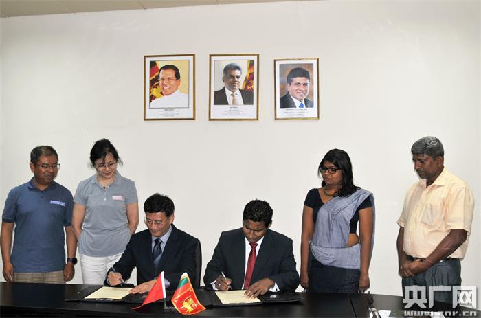 上海博物館館長(zhǎng)楊志剛與斯里蘭卡中央文化基金會(huì)主席Prishanta Gunawardhana 教授,在兩國(guó)代表陪同見證下簽署合作備忘錄。(央廣網(wǎng)發(fā) 上海博物館供圖)