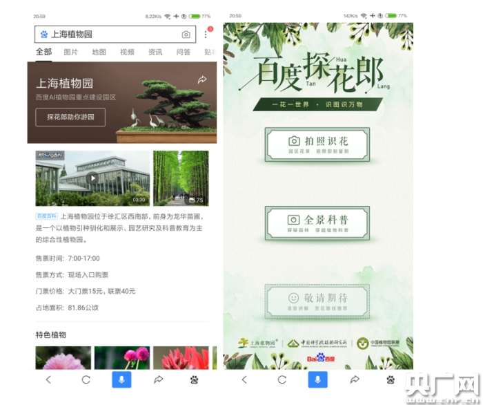 央廣網(wǎng)上海9月17日消息(記者傅聞捷)今天下午,在全國(guó)科普日活動(dòng)期間,百度在上海與上海植物園、中國(guó)科學(xué)院西雙版納熱帶植物園、中國(guó)科學(xué)院武漢植物園、中國(guó)科學(xué)院植物研究所北京植物園以及中國(guó)科學(xué)院昆明植物研究所昆明植物園5家國(guó)內(nèi)知名植物園達(dá)成合作,共同推出“AI植物園計(jì)劃”,并落地“百度探花郎”產(chǎn)品。上海植物園作為該計(jì)劃的首個(gè)全流程體驗(yàn)落地試點(diǎn),將以同期舉行的2018世界人工智能大會(huì)體驗(yàn)基地的身份,面向公眾開(kāi)放。