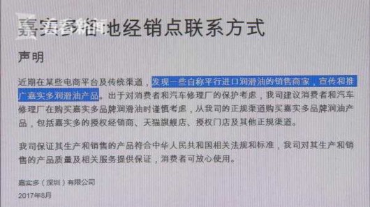 而嘉實(shí)多官方甚至聲明,發(fā)現(xiàn)一些自稱平行進(jìn)口潤(rùn)滑油的銷售商家在推廣商品,建議消費(fèi)者謹(jǐn)慎考慮。