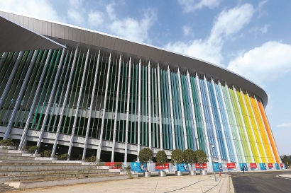 記者日前探營國家會展中心(上海),進博會場館南門已裝扮一新。賴鑫琳 攝