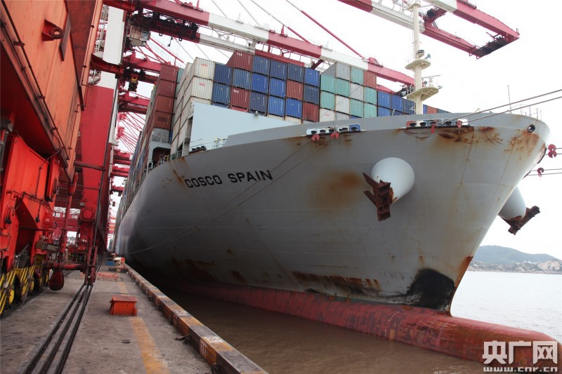 中遠(yuǎn)西班牙輪靠港 (央廣網(wǎng)發(fā) 韓帥攝)