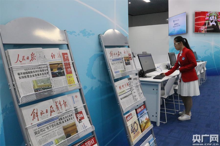 新聞中心一層設(shè)立咨詢(xún)服務(wù)臺(tái),提供中、英文信息咨詢(xún)服務(wù)、資料發(fā)放、失物招領(lǐng)等服務(wù)。 -
