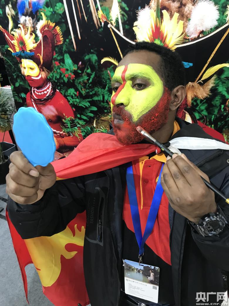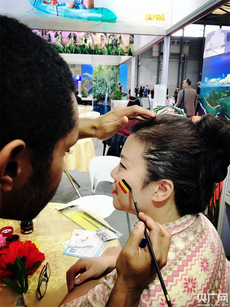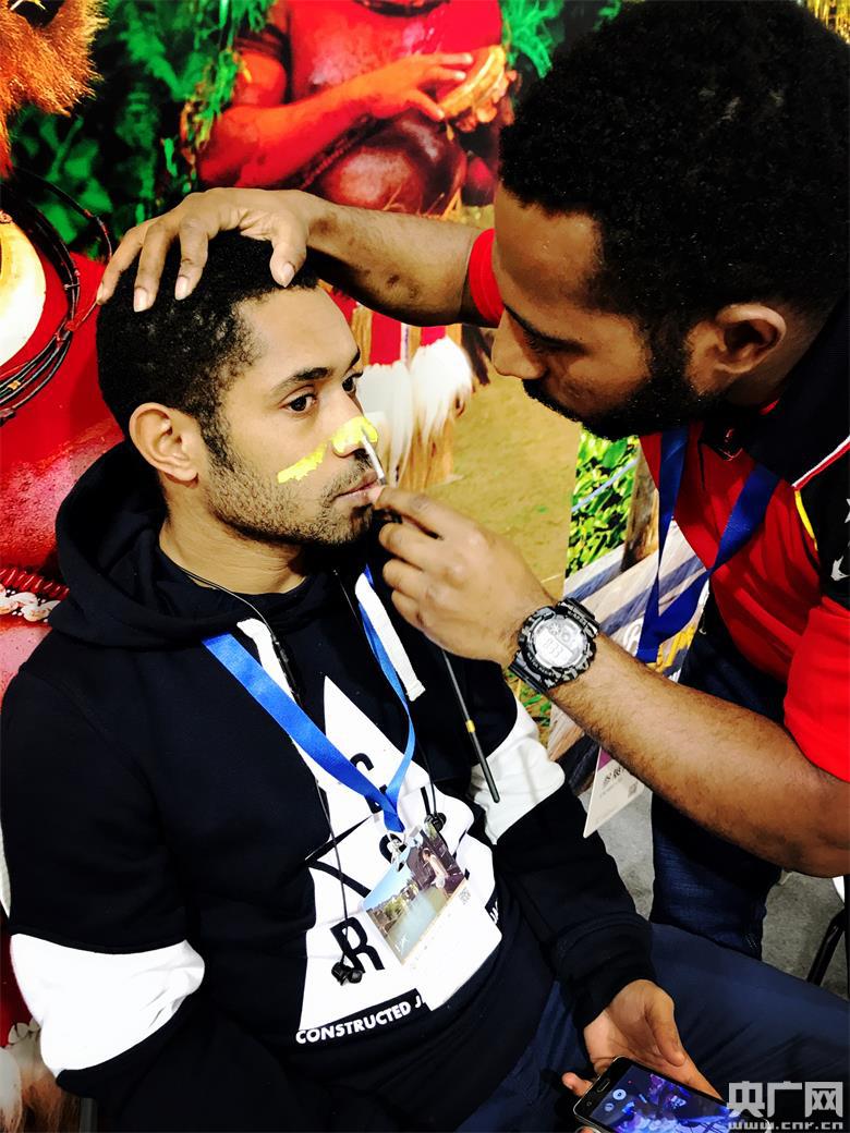 巴布亞新幾內(nèi)亞土著民族向游客展示面部彩繪(央廣網(wǎng)發(fā) 巴布亞新幾內(nèi)亞駐上海名譽(yù)領(lǐng)事館 供圖)