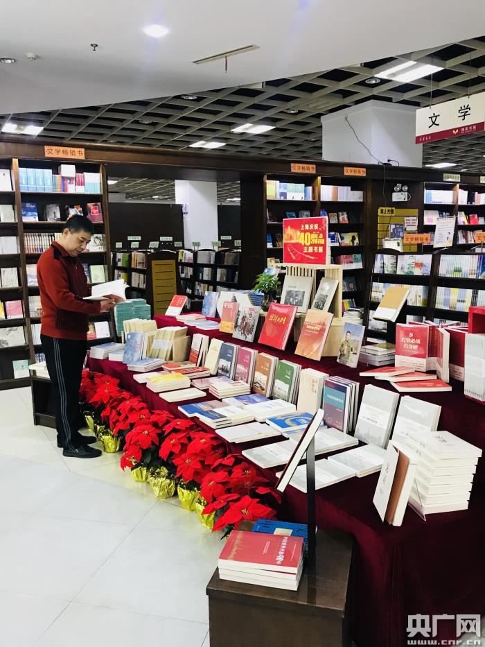 “上海慶祝改革開放40周年主題書展”專柜和展臺(tái)均設(shè)置在書店店堂顯要位置,陳列展銷慶祝改革開放40周年的重點(diǎn)圖書近百種,包括《習(xí)近平新時(shí)代中國(guó)特色社會(huì)主義思想三十講》、《習(xí)近平談治國(guó)理政 第二卷》(中文版)、《習(xí)近平改革開放思想研究》、《習(xí)近平用典 第二輯》、《中國(guó)改革開放全景錄(中央卷)》、《中國(guó)對(duì)外開放40年》、《中國(guó)農(nóng)村改革40年》、《上海改革開放40年大事研究(全12卷)》、《上海改革開放40年——那些年,我們的故事》、《文明型國(guó)家》、《改革開放成就上海》、《再造中國(guó)——領(lǐng)導(dǎo)型國(guó)家的文明擔(dān)當(dāng)》、《全球城市——演化原理與上海2050》、《改革中國(guó)——十六位學(xué)者論改革開放四十年》、《中國(guó)傳奇——浦東開發(fā)史》、《浦東史詩(shī)》等,力求多維度展現(xiàn)中國(guó)改革開放40年所取得的成就,滿足廣大市民、團(tuán)體單位閱讀學(xué)習(xí)的需求。醒目的展陳設(shè)計(jì),豐富的圖書種類,吸引了不少讀者駐足翻閱和購(gòu)買。