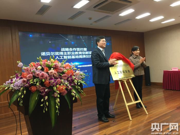 上海首個(gè)諾貝爾獎(jiǎng)得主職教創(chuàng)新實(shí)踐中心—人工智能基地揭牌(央廣網(wǎng)記者 吳善陽 攝)
