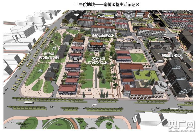 據(jù)奉賢區(qū)城市更新推進辦常務(wù)副主任、區(qū)建管委主任施連規(guī)介紹,“南橋源”項目東起環(huán)城東路,西至南橋路,南起解放路,北至浦南運河,占地面積約900余畝?傮w方案包括四古溪行、沈家花園、文化廣場、鼎豐醬園、南橋體育中心、南橋書院、卜羅德祠、人民路歷史文化風(fēng)貌復(fù)興街、運河水鄉(xiāng)9個地塊的更新改造,稱為“南橋九景”。在本次開工的二號院項目范圍內(nèi)既有百年園林沈家花園(上海市級文物保護單位),也有建于上世紀70年代的民防工程,是一片具有重要歷史文化價值的區(qū)域。