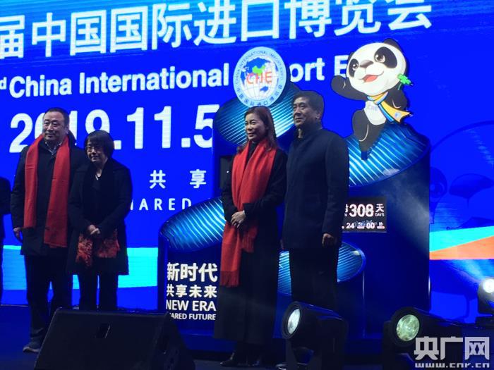 第二屆國際進口博覽會倒計時牌揭幕(央廣網(wǎng)記者 吳善陽 攝)