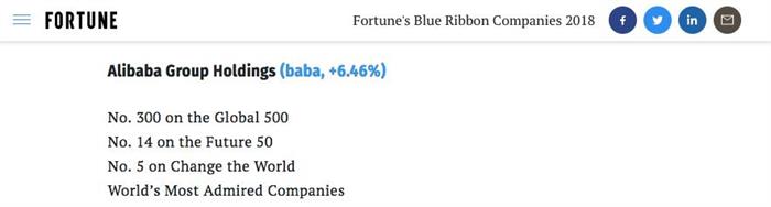 這也是中國(guó)公司首次入選這一全球視野內(nèi)的商業(yè)“全明星”榜單,它也意味著需要一年中至少四次入選《財(cái)富》榜單。一年以來(lái),阿里巴巴先后獲評(píng)“財(cái)富500強(qiáng)”,“未來(lái)50強(qiáng)第14名”,“改變世界的5大公司”,“最受贊賞公司”等一系列《財(cái)富》榜單。