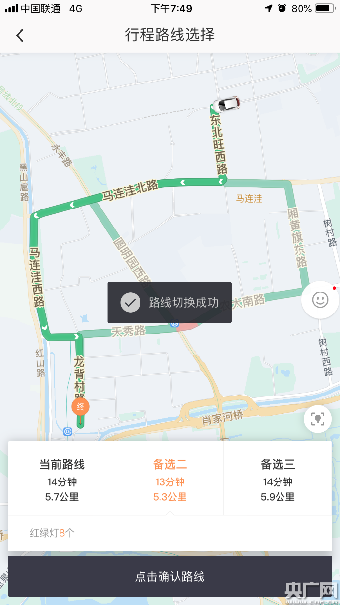 “選擇路線”功能示意圖(央廣網(wǎng)發(fā) 滴滴出行 供圖)