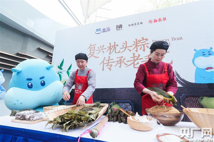 盒馬聯(lián)手三家老字號(hào)推出湖州枕頭粽(央廣網(wǎng)記者 韓曉余 攝)