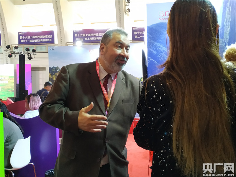 秘魯駐上海經(jīng)濟(jì)商務(wù)處商務(wù)參贊弗拉迪米爾·戈切哈介紹秘魯旅游項目 央廣網(wǎng)記者林馥榆 攝