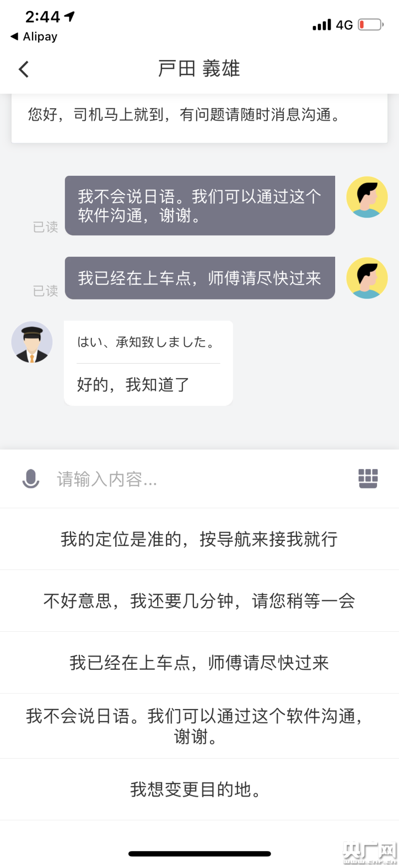 大中華版本用戶可通過App內(nèi)置中日文實時互譯系統(tǒng)與司機交流(央廣網(wǎng)發(fā) 滴滴 供圖)