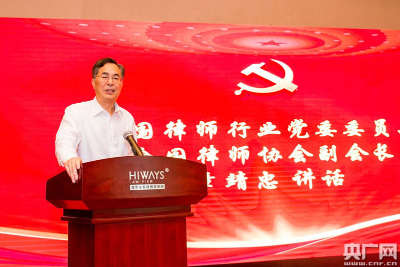 全國(guó)律師行業(yè)黨委委員、中華全國(guó)律師協(xié)會(huì)副會(huì)長(zhǎng) 章靖忠(央廣網(wǎng)發(fā) 海華永泰律師事務(wù)所提供)