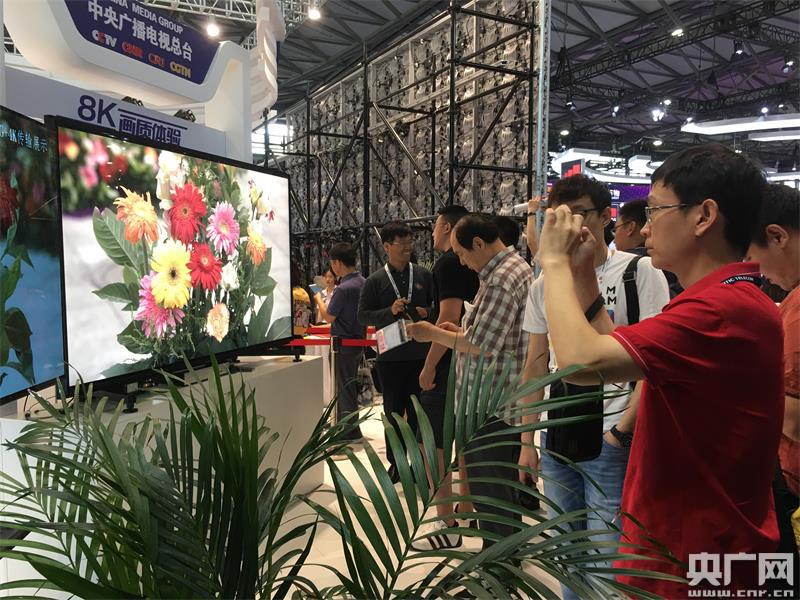 參觀者饒有興趣駐足欣賞8K畫面(央廣網(wǎng)記者 吳善陽 攝)