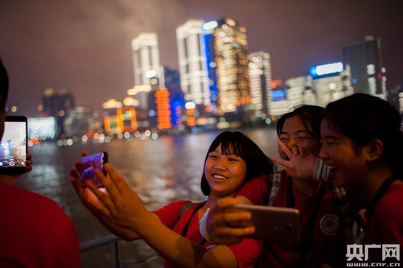 7月10日,學(xué)生們參觀陸家嘴金融中心,體驗(yàn)上海城市文明。(央廣網(wǎng)發(fā) 上海財(cái)經(jīng)大學(xué) 供圖)