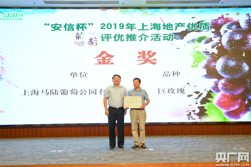 市郊涉農(nóng)9個(gè)區(qū)、光明集團(tuán)從事葡萄生產(chǎn)的33家企業(yè)、合作社報(bào)名參與本次評(píng)優(yōu)活動(dòng),報(bào)名參評(píng)產(chǎn)品共計(jì)50個(gè),均通過(guò)“三品”認(rèn)證;顒(dòng)邀請(qǐng)專家評(píng)委和市民評(píng)委共同打分,葡萄的果穗、果粒,是不是均勻美觀;平均糖度是否達(dá)標(biāo),肉質(zhì)口感是不是細(xì)膩,最后包裝、追溯等流通指標(biāo),也是重要的考核標(biāo)準(zhǔn)。本次評(píng)優(yōu)活動(dòng)特邀上海市農(nóng)產(chǎn)品質(zhì)量安全中心對(duì)報(bào)名參評(píng)的產(chǎn)品進(jìn)行采樣檢測(cè),檢測(cè)通過(guò)的才有最終參評(píng)資格,保證了參評(píng)產(chǎn)品的質(zhì)量安全。最終,上海馬陸葡萄公園有限公司種植的巨玫瑰獲得金獎(jiǎng)。上海市農(nóng)業(yè)農(nóng)村委副主任葉軍平為金獎(jiǎng)獲得單位頒獎(jiǎng)。
